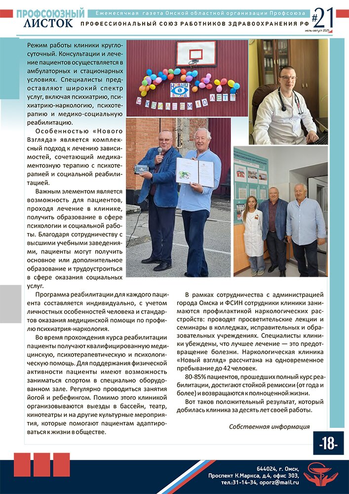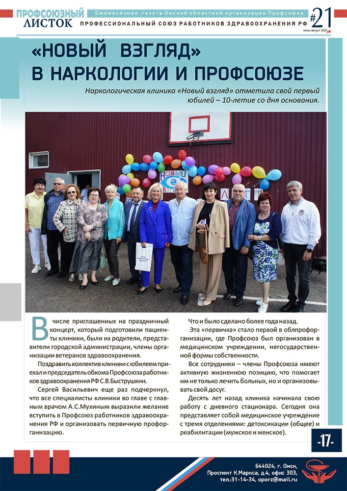 «НОВЫЙ ВЗГЛЯД» В НАРКОЛОГИИ И ПРОФСОЮЗЕ
